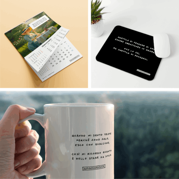 No, non le persone, ovviamente. Ma il Kit Antipatia in Ufficio: scegli il formato di calendario che preferisci e abbinaci la tazza e il mouse pad che ti rappresentano di più.
