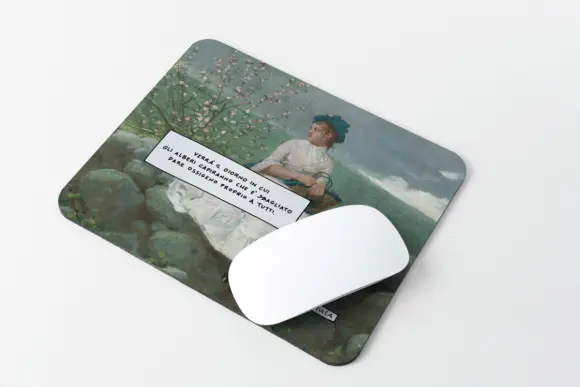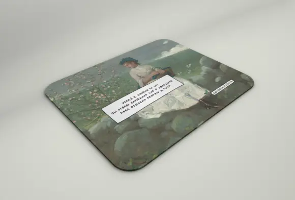 Tappetino mouse rettangolare in morbido e flessibile tessuto poliestere e fondo nero in gomma antiscivolo.
