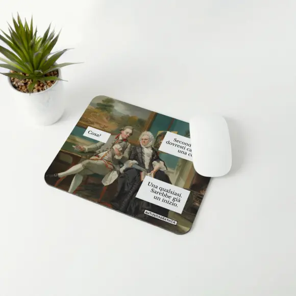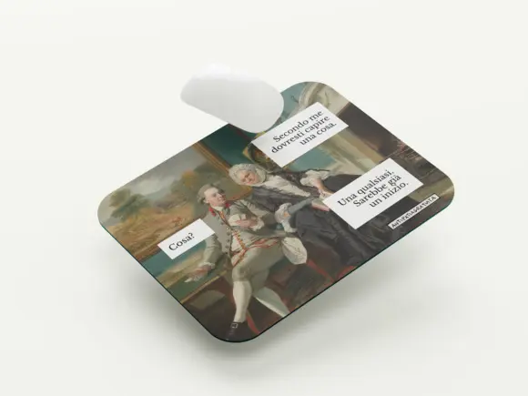 Tappetino mouse rettangolare in morbido e flessibile tessuto poliestere e fondo nero in gomma antiscivolo.