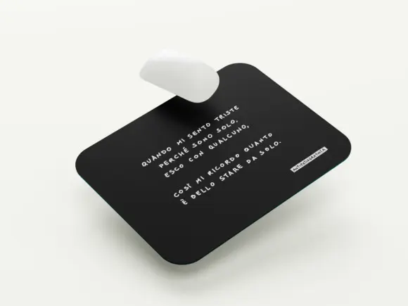 Tappetino mouse rettangolare in morbido e flessibile tessuto poliestere e fondo nero in gomma antiscivolo.