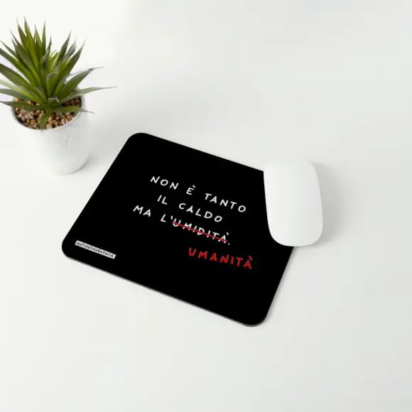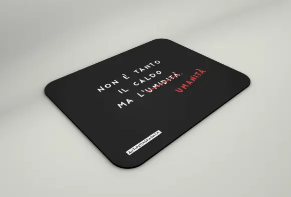 Tappetino mouse rettangolare in morbido e flessibile tessuto poliestere e fondo nero in gomma antiscivolo.