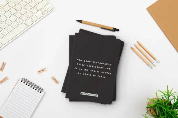 Quaderno in formato A5 con pagine bianche. Rilegatura cucita a filo singer.