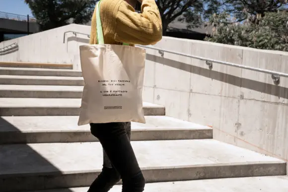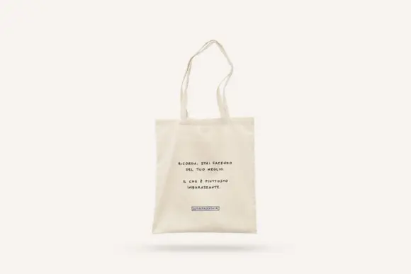 Borsa in tela 100% cotone 180 gr/mq, di colore naturale. Manici lunghi.