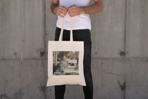 Borsa in tela 100% cotone 180 gr/mq, di colore naturale. Manici lunghi.